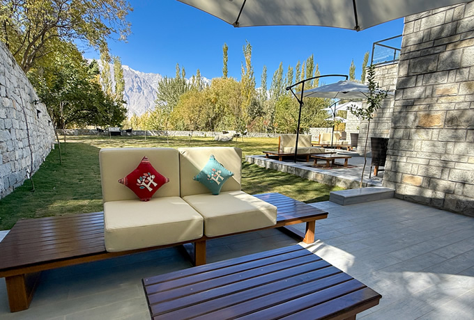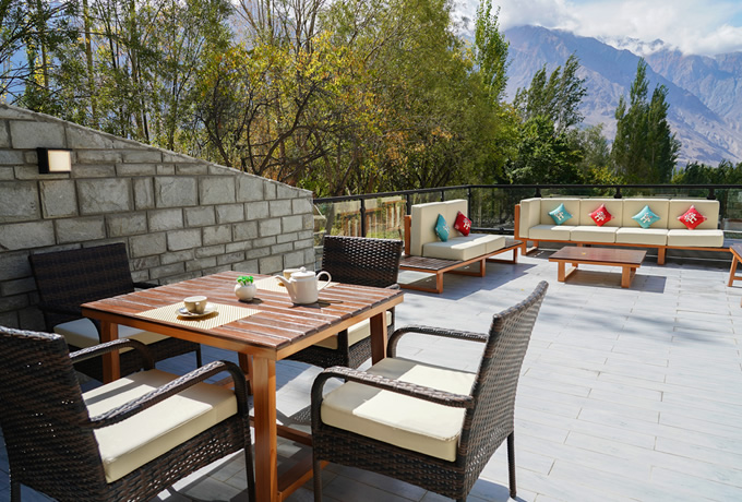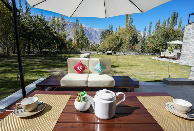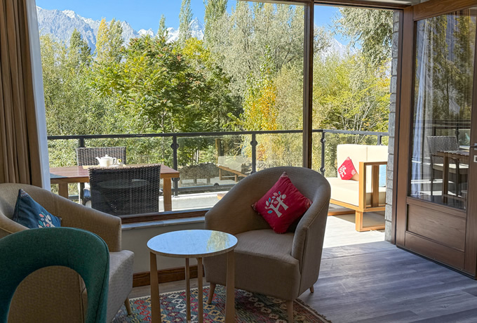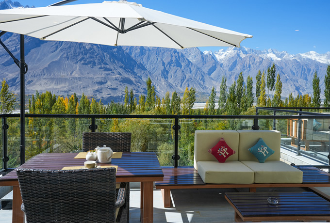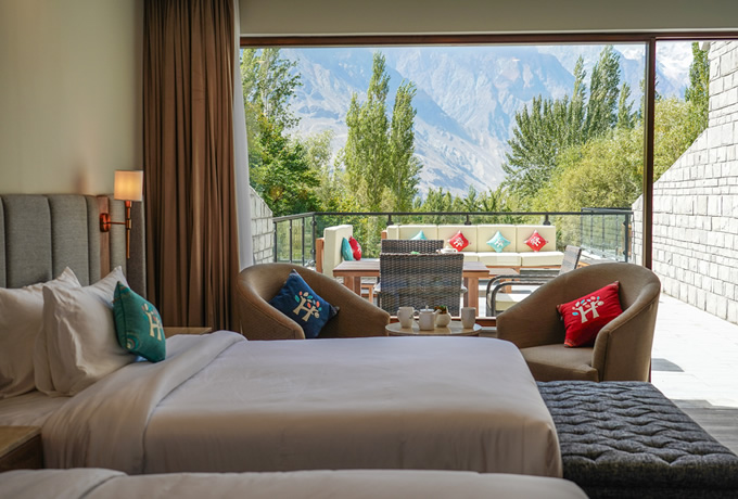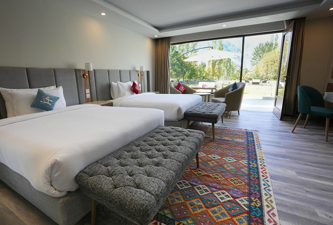Our Private Terrace Rooms offer stunning views of the surrounding orchards, poplar trees, and mountain landscape.